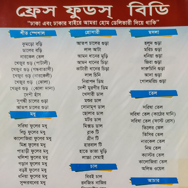 38/1 Borobag, Mirpur -2, Dhaka. https://www.facebook.com/Freshfoodsbd/posts/4380088015399791